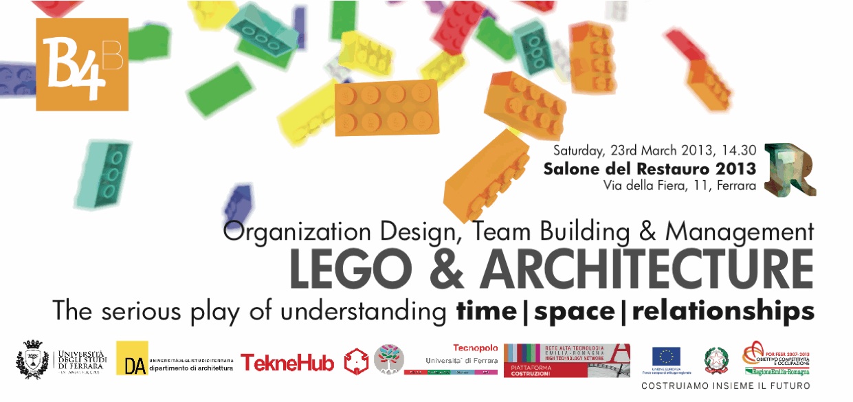 At Restauro 2013, Ferrara Via della Fiera 11, LEGO SERIOUS PLAY, creativity, heritage, inclusive design and Architecture will mingle in an unique and exciting combination. LSP workshops with students an stakeholder will inspire, and a conference with the key players in the LSP domain is an unique opportunity to learn about the method and the experiences that proved how thinking with hands can enhance our creativity and lead to innovation and results.